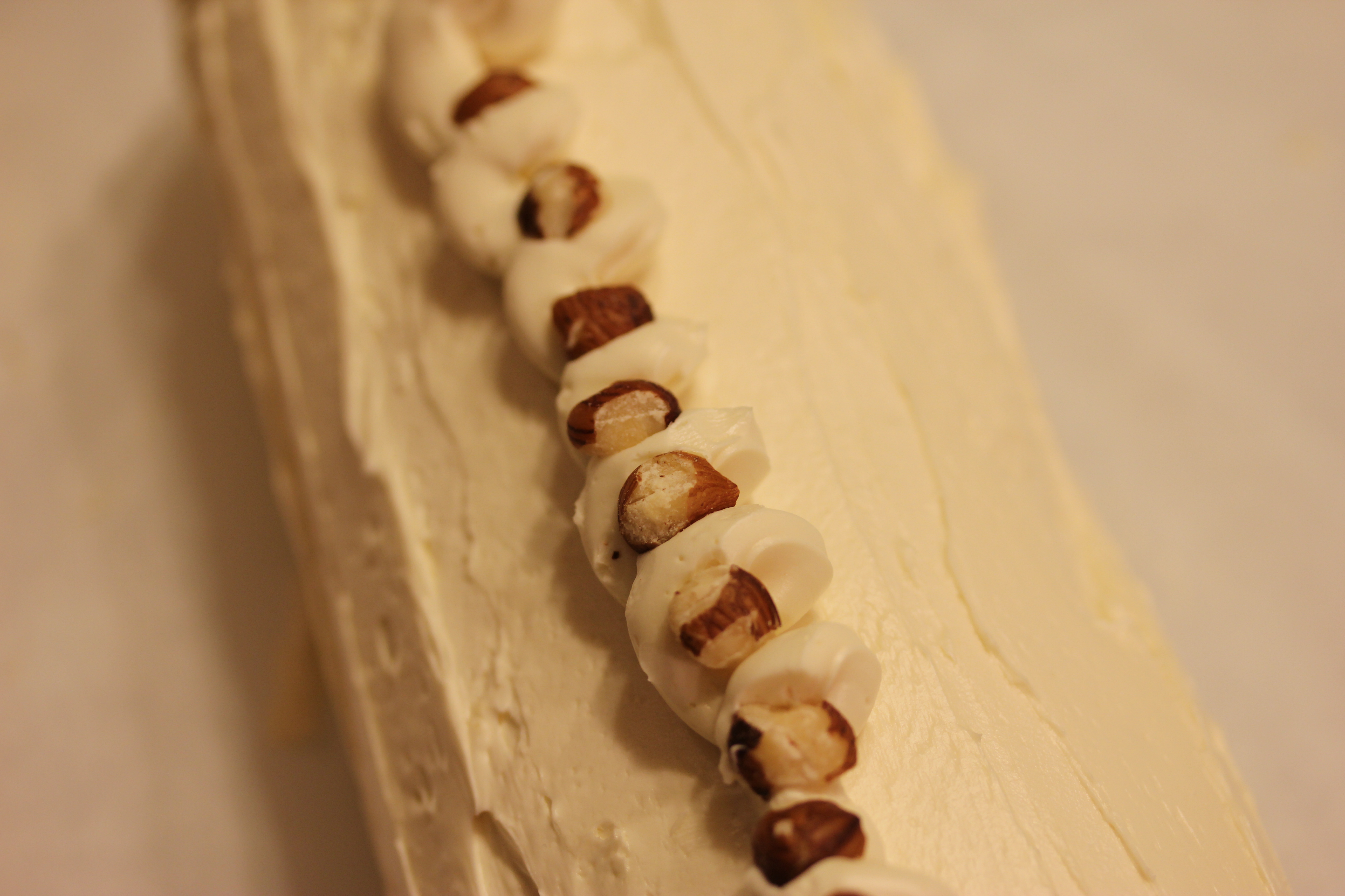 Now the thing is, my story this year is true. I was living in Washington and going to school at Hopkins in Baltimore. And there was a flood and that bakery was swept away. But each year, I find some way now to make this holiday treat. Well, to have Suzen make it. Suzen is not a buttercream fan, so I generally feel a need to give her some inspiration. I will say this, she makes a beautiful cake, including that piped buttercream on the top. Those are coffee candies dotting the buttercream.