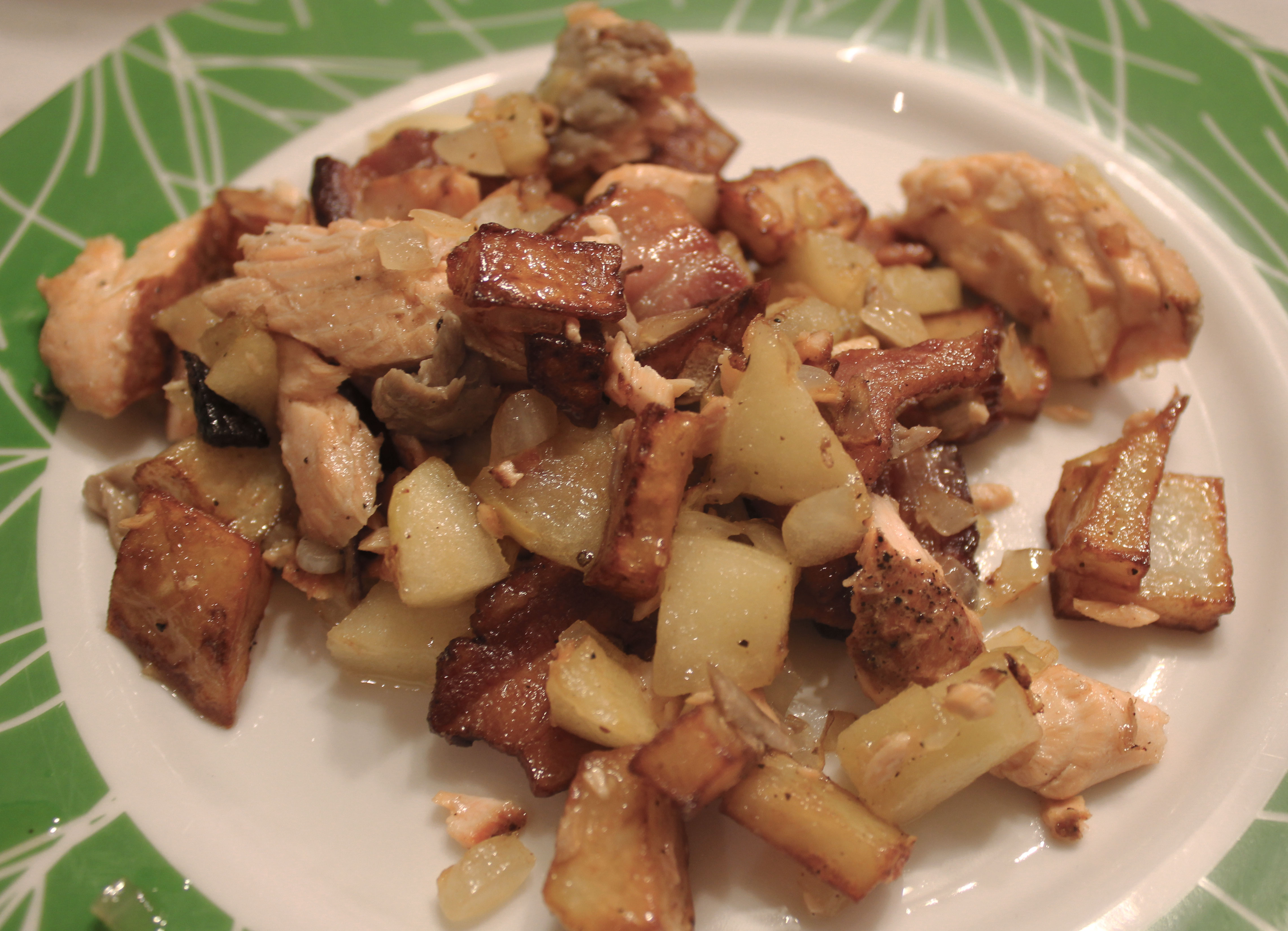 Hash is a wonderful food. I know, the name “hash” is harsh, not pretty sounding, but it can be amazingly satisfying. Here’s a simple hash, ideal for a quick breakfast but elegant enough for dinner.