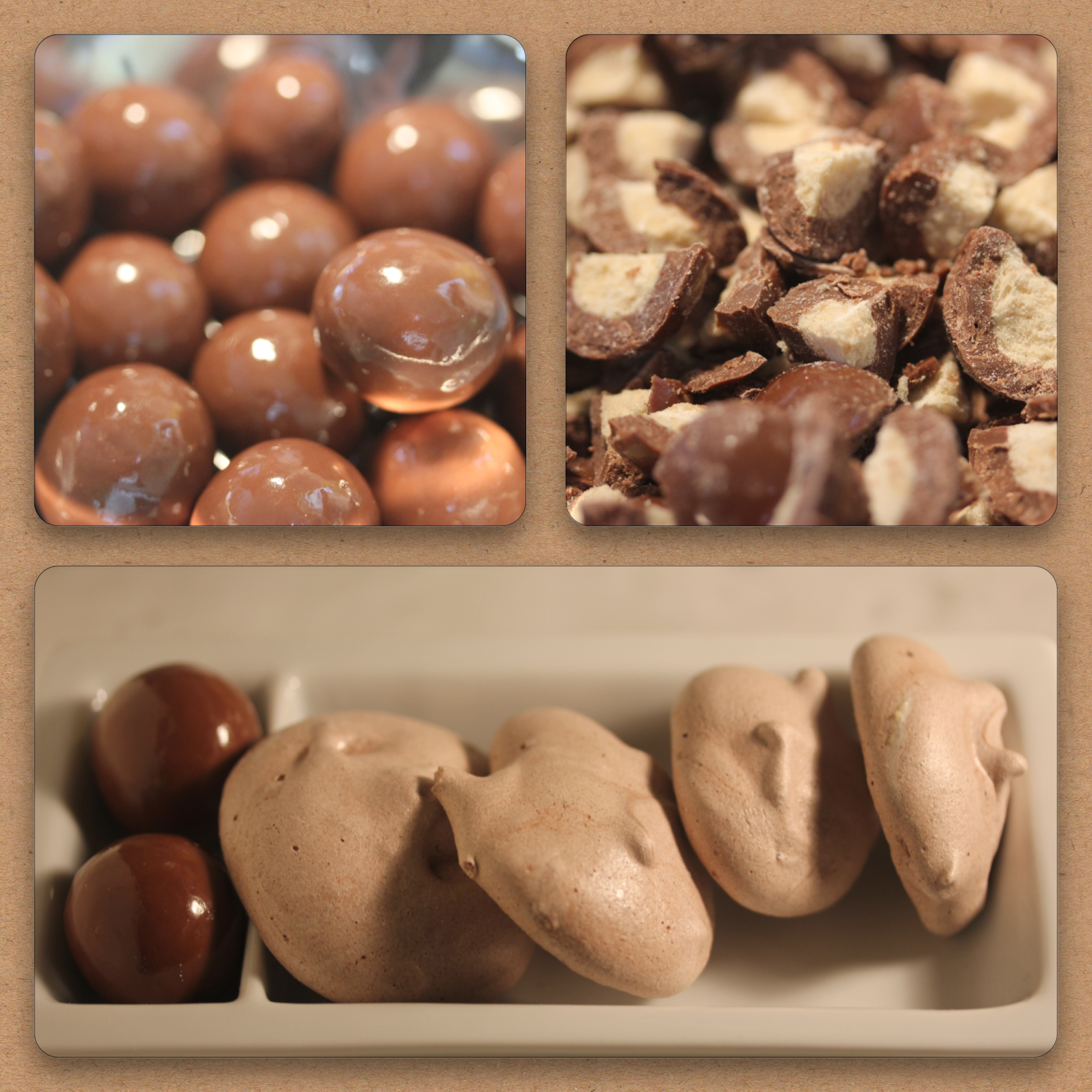 She snorted, because she does like malt balls and I did not use to like them and then we got this recipe for Malt Ball Ice Cream and … Well, I think she thought it was all a set up for ice cream on Sunday. Instead, she got these Malt Ball Meringues. She’s happy. I’m happy. We are out of malt balls. Just part of the balance of life.