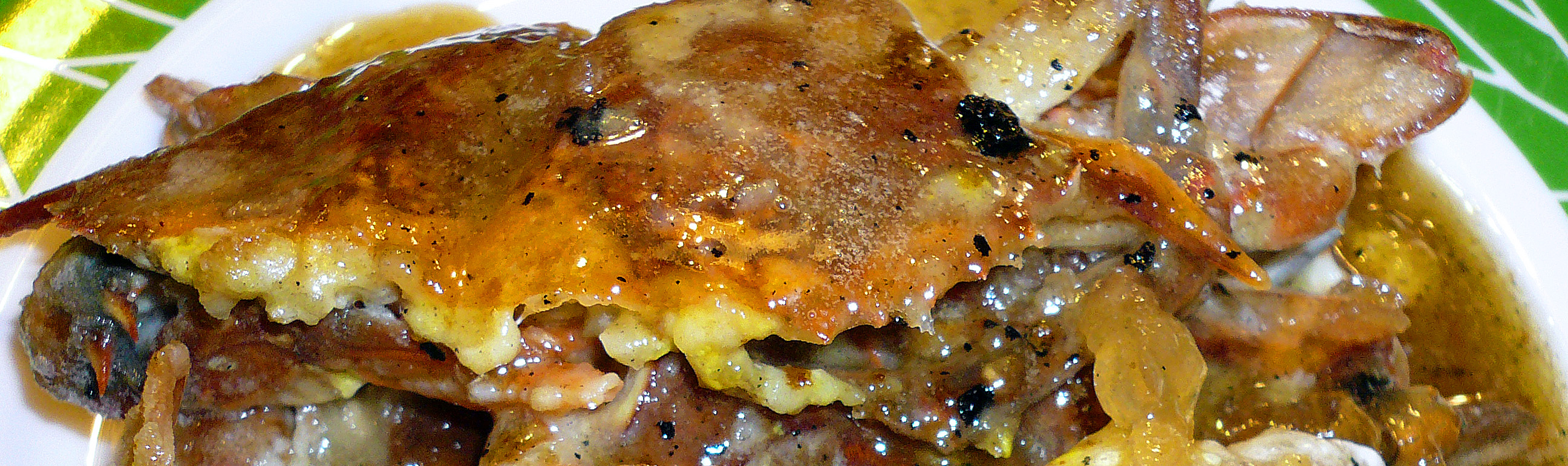 I don’t know where we bought it, but I made the recipe below for soft shell crabs with a butter-based sauce and some of this jelly. You may have the standard butter-caper sauce on your crabs before, and it is lovely. But this sauce, this sauce is simply wonderful and much, much better. If you can’t find this particular brand of jelly, then you certainly can experiment: you need a combination of pepper jelly, cooked onion, and cooked garlic.